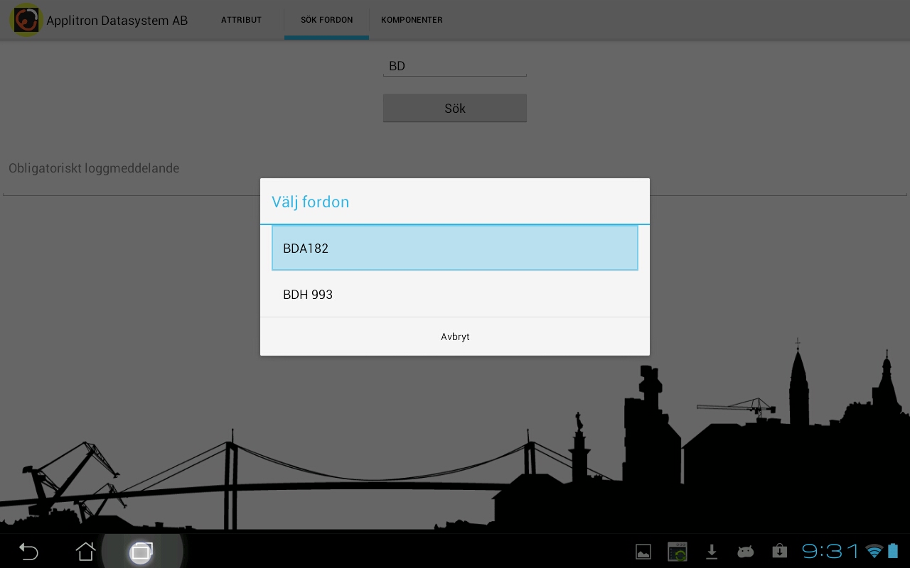 Sökning av bil via reg.nr