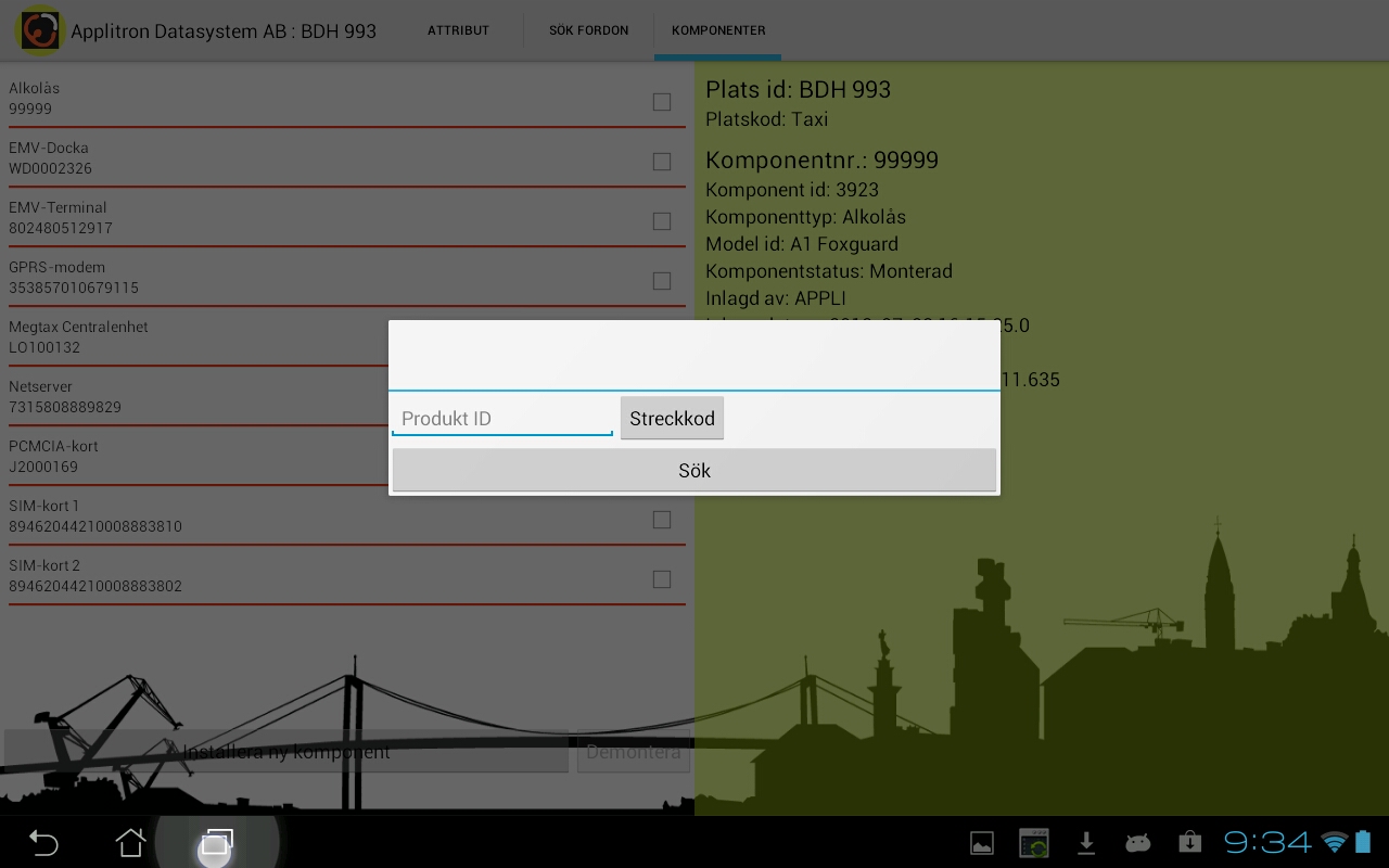 Scanna in komponentens ID-nummer med hjälp av blåtandsscanner eller den mobila enhetens kamerafunktion.